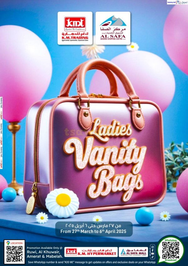 عروض ك إم والصفا عمان حتى 6 إبريل 2025 عروض حقائب السيدات Get link Facebook X Pinterest Email Other Apps March 30, 2025 KM Trading & Al Safa Oman offers to 6 Apr 2025 Ladies Vanity Bags إضغط على الصورة لمشاهدة العرض كاملاُ Get link Facebook X Pinterest Email Other Apps